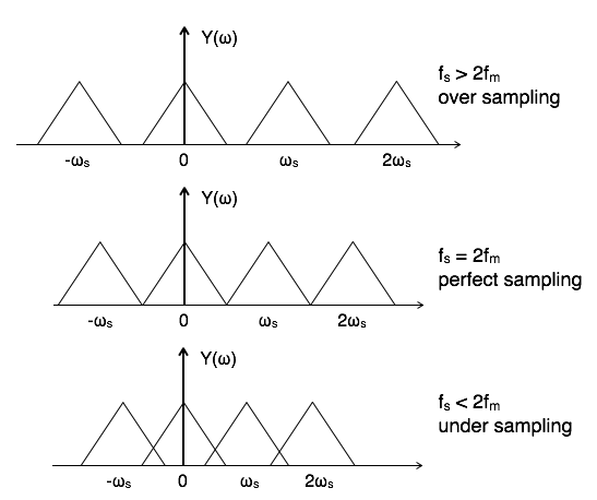 즉, $f_\text{sampling} = \omega_s \ge 2c$일 때, aliasing이 생기지 않으며, 때문에 신호를 완벽하게 복원할 수 있다.