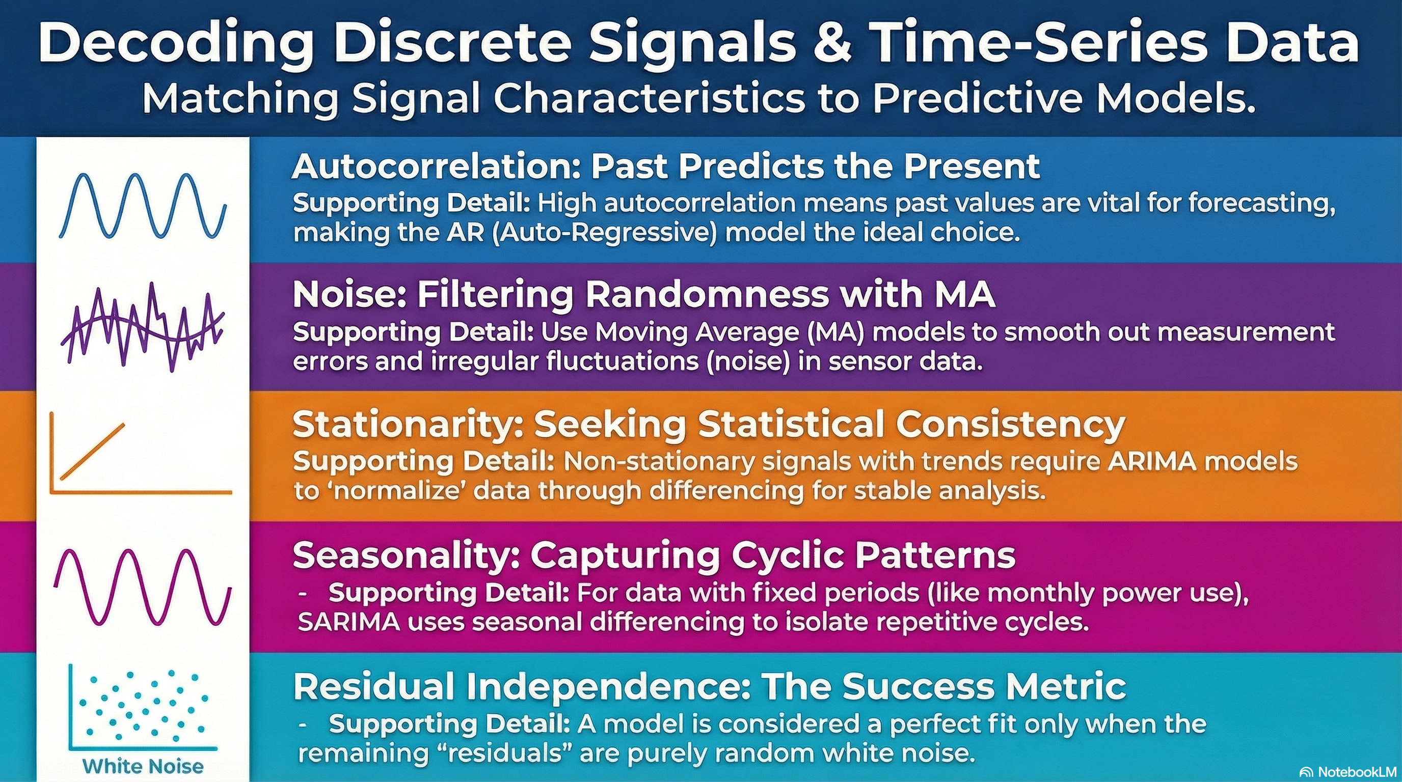 - SARIMA (Seasonal ARIMA) 모델은 신호의 계절적 패턴을 포함하여 모델링.
