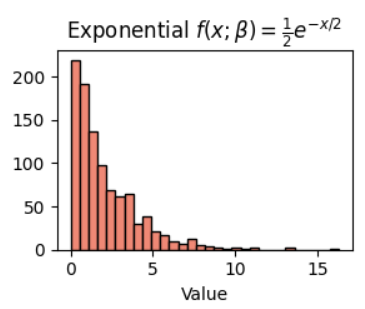 지수 분포(Exponential distribution)의 수식은 다음과 같음: