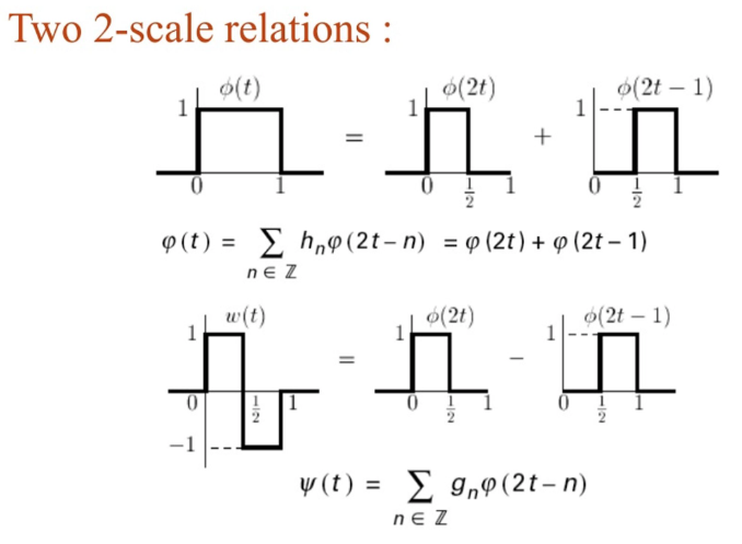 - $\boxed{\Psi(t) = \sqrt{2} \left( g_0 \Phi(2t) + g_1 \Phi(2t-1) \right)}$