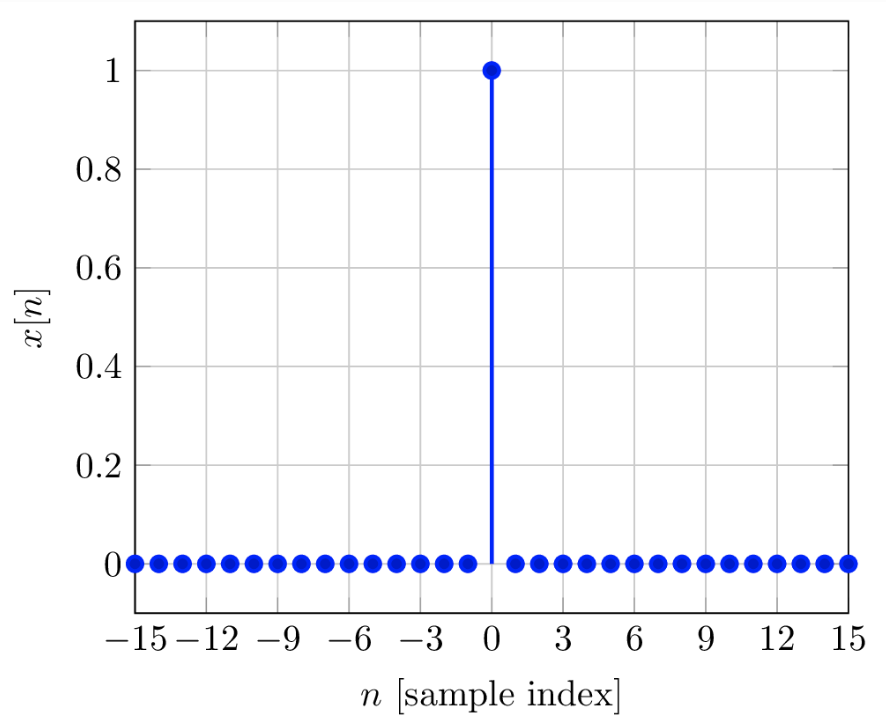 $$\delta[n] = \begin{cases} 1 & \text{if } n = 0 \\ 0 & \text{if } n \ne 0 \end{cases}$$