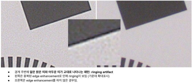 Edge enhancement는 이미지의 경계만 선명해져 평탄부와의 디테일 밸런스가 깨져 부자연스러워 보일 수 있는 단점