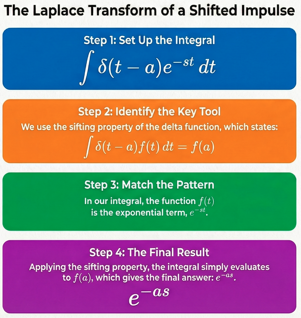 - Laplace integrand는 $\delta(t-a)e^{-st}$ 형태