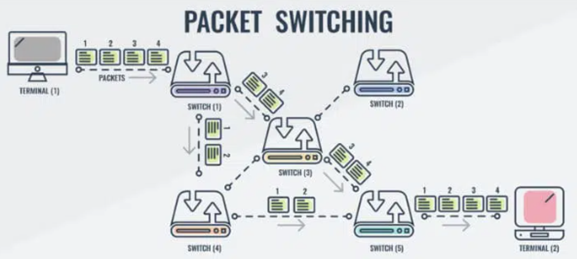 - 긴 message는 일정길이의 packet으로 나누어지고, 각 packet에는 다시 message로 조립하는데 필요한 정보와 destination 정보가 있음.