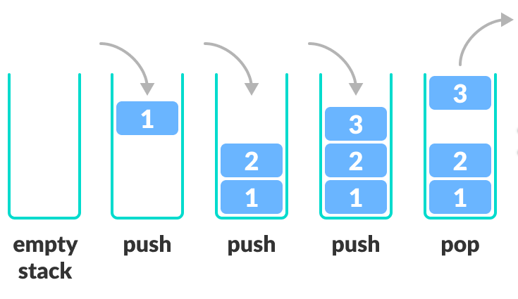 많은 경우 접시 쌓기를 예로 사용하여 First-In-Last-Out (FILO), Last-In-First-Out (LIFO)를 설명한다.