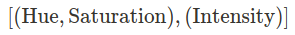HSI 는 Color 에서 색의 밝기(휘도,Luminance, 명도,Lightness, 밀도,Intensity)를 분리시켜 다음과 같이 구성된 Color space임.