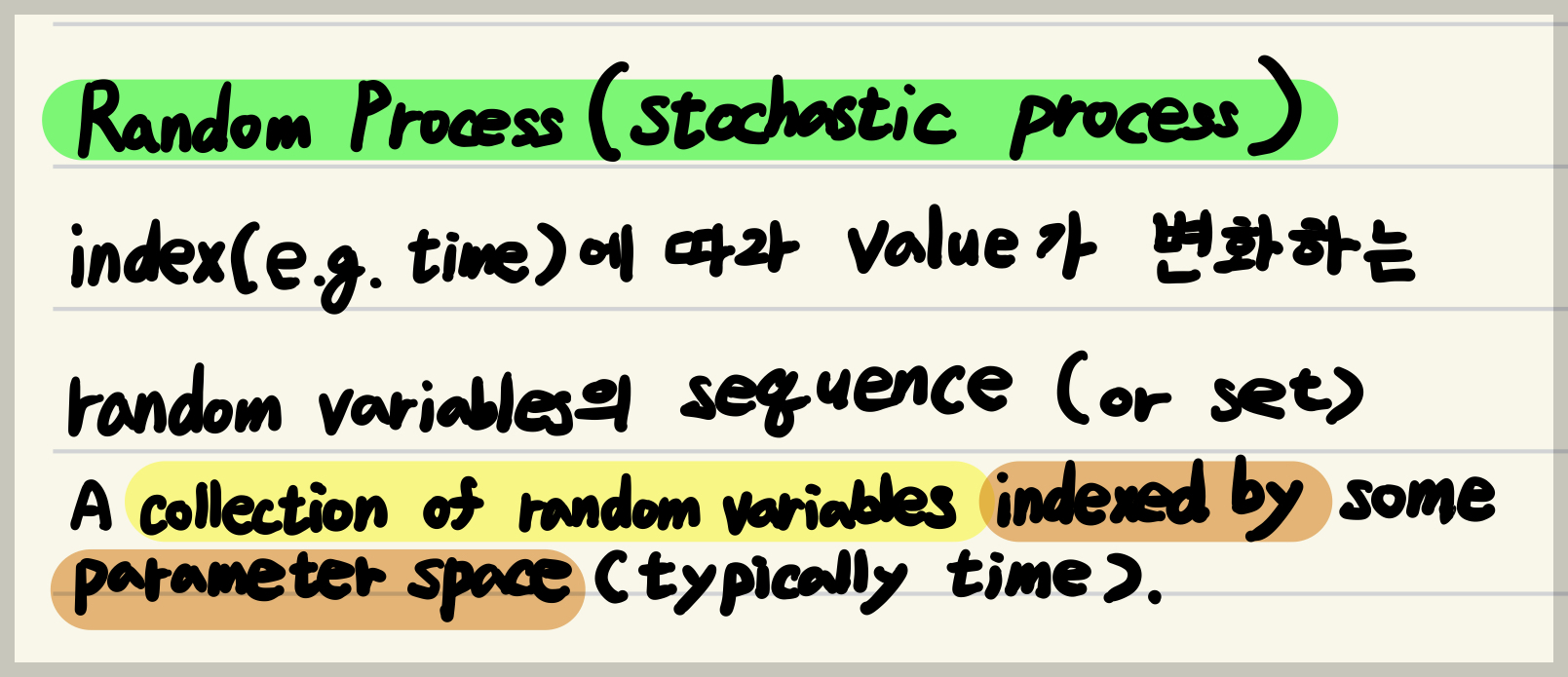 - $\textbf{x}$ : random process의 index (여기선 일반화된 표현을 위해 vector사용.)