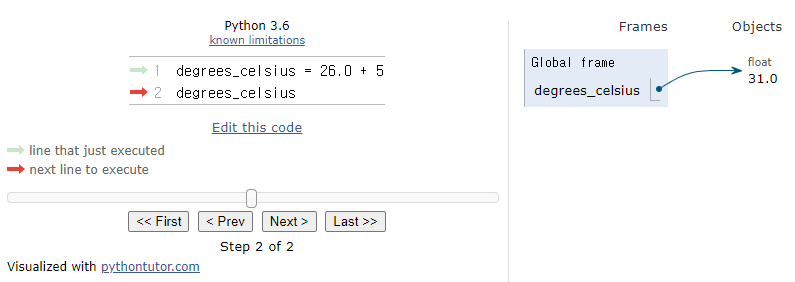 이후 degrees_celsius는 31.0의 값을 가리키므로 exression에서 사용될 경우 해당 값으로 치환되게 된다.